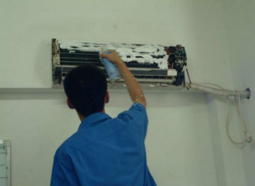| 中卫空调维修师傅给中卫用户上门维修清洗空调。 |